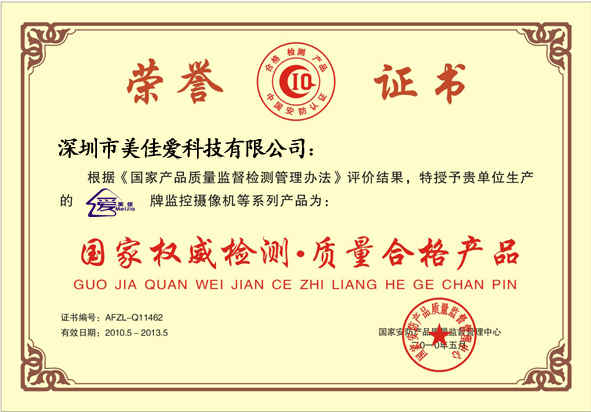 國(guó)家權(quán)威檢測(cè) 質(zhì)量合格產(chǎn)品證書(shū)副本