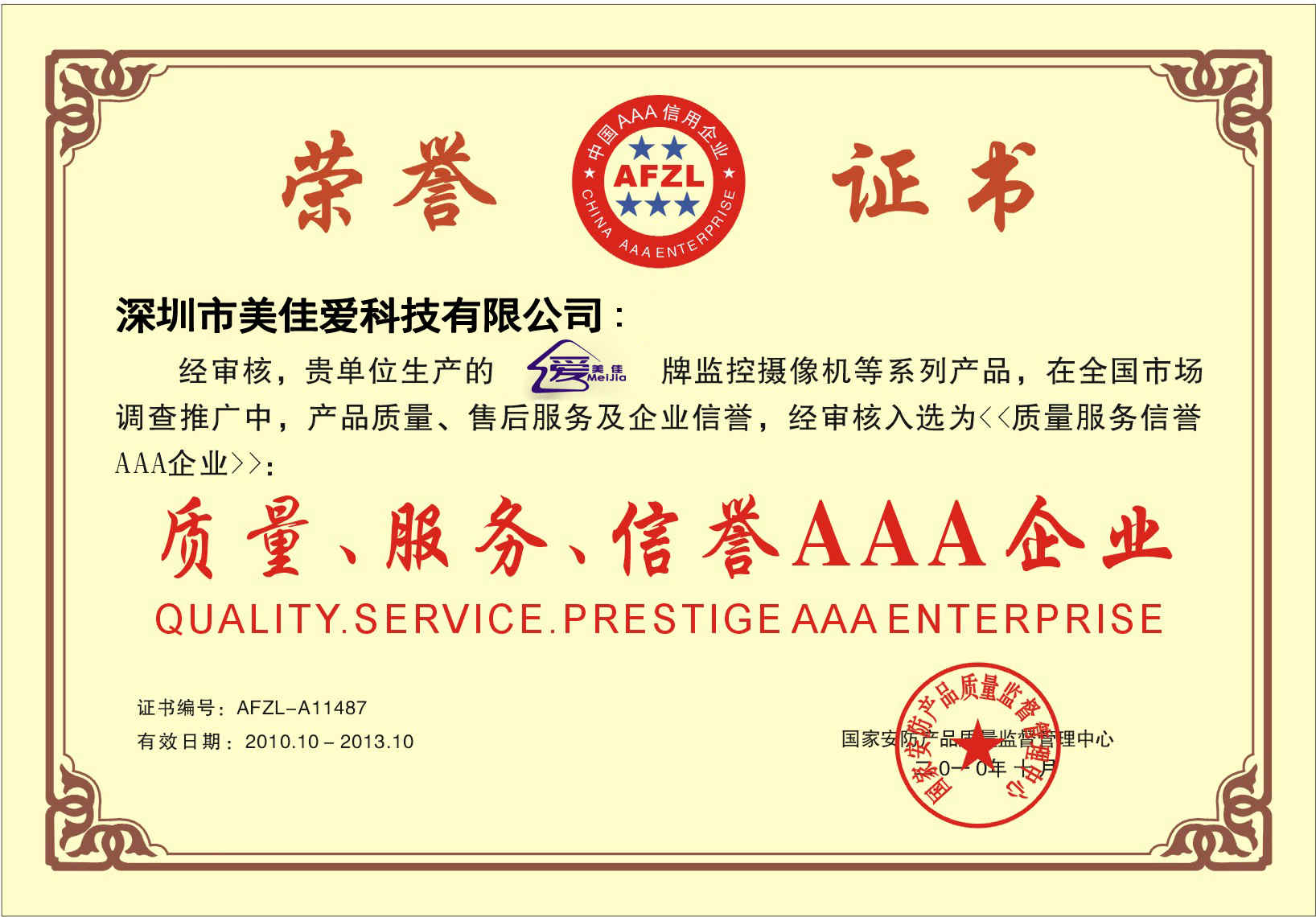 質(zhì)量、服務(wù)、信譽(yù)AAA企業(yè)證書(shū)副本